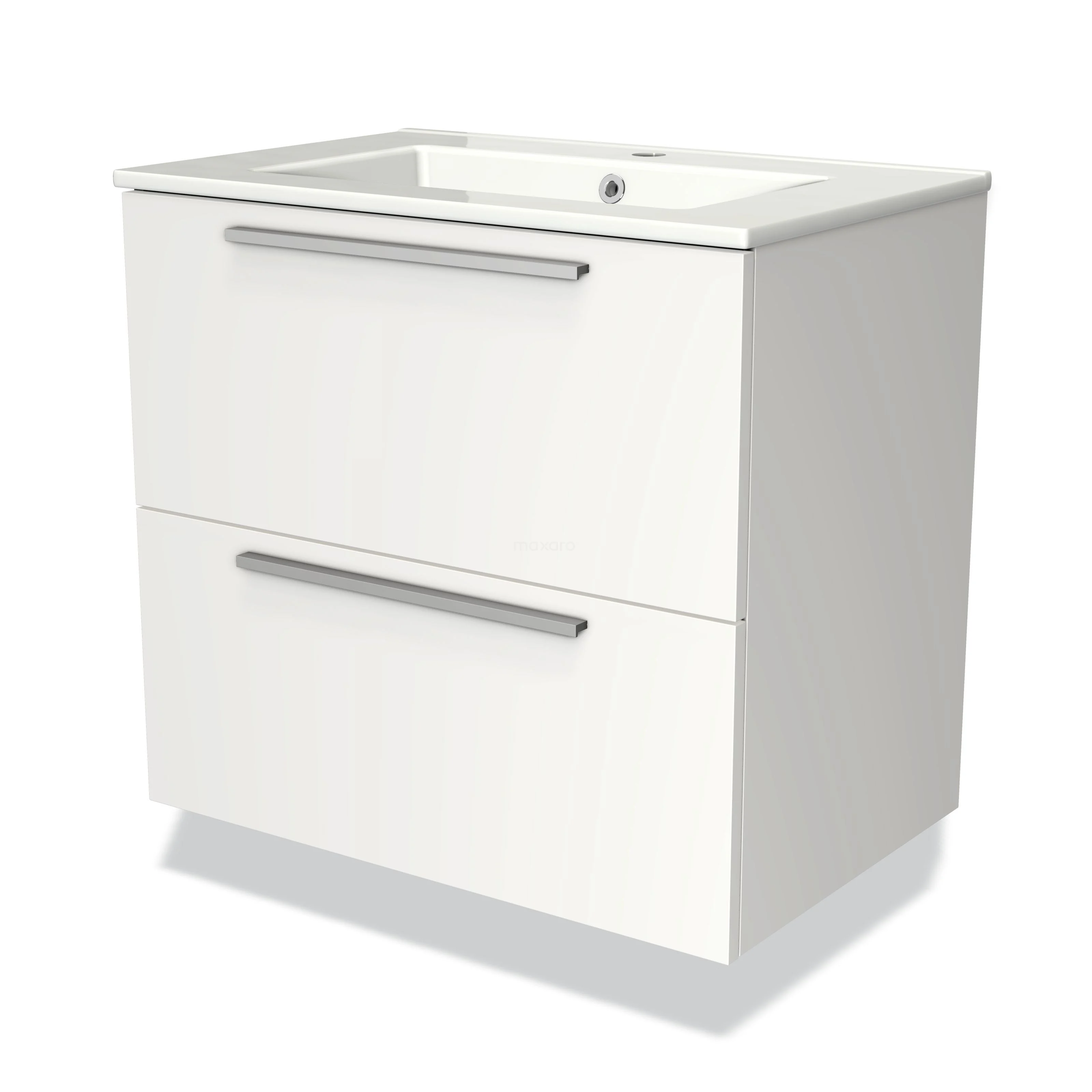 Modulo Vanity units with basin | 70 cm Matte white Flat front Ceramic 2 Stacked drawers
