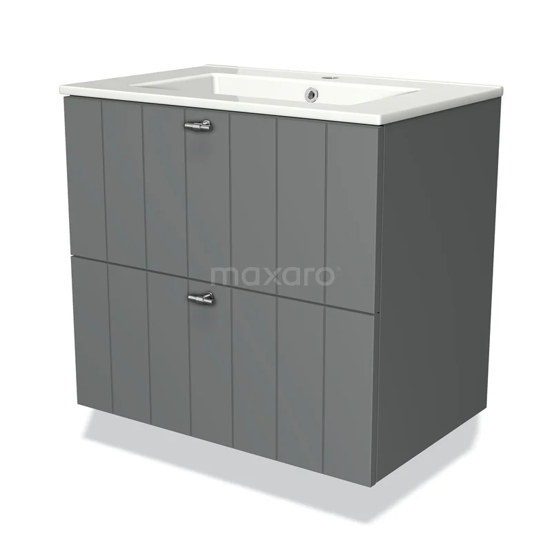 Modulo Vanity units with basin | 70 cm Mid grey Slat front Ceramic 2 Stacked drawers