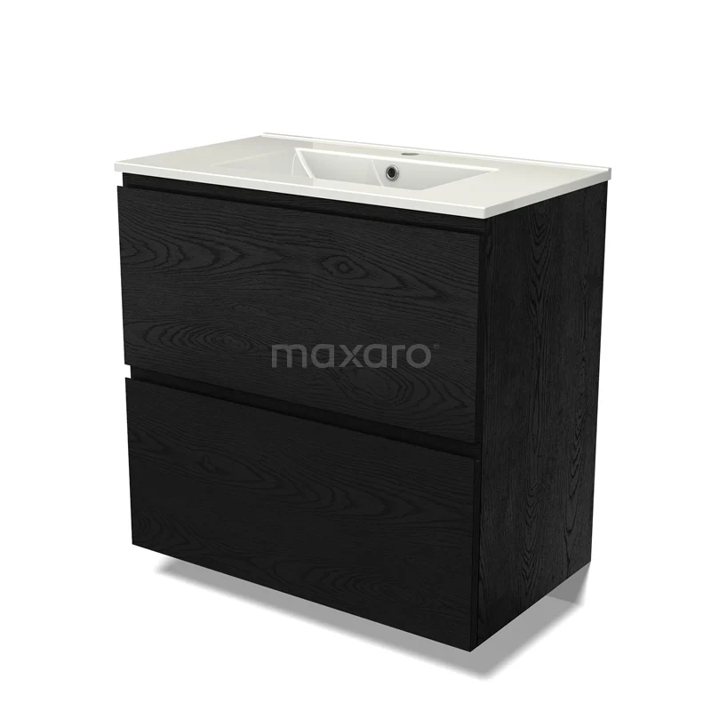 Modulo Vanity units with basin | 80 cm Black oak Handle-less front Ceramic 2 stacked drawers under each other