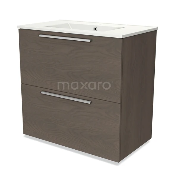 Modulo Vanity units with basin | 80 cm Dark brown oak Flat front Ceramic 2 stacked drawers under each other