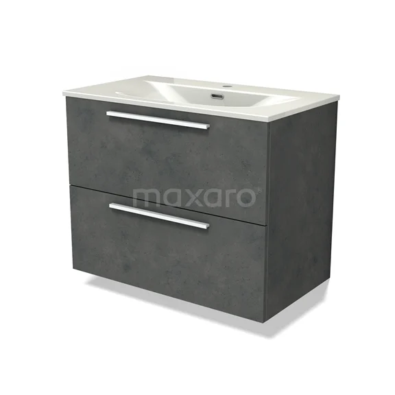 Modulo Vanity units with basin | 80 cm Dark grey concrete Flat front Ceramic 2 Stacked drawers