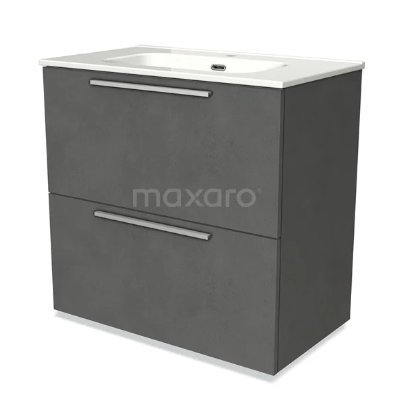 Modulo Vanity units with basin | 80 cm Dark grey concrete Flat front Ceramic 2 stacked drawers under each other