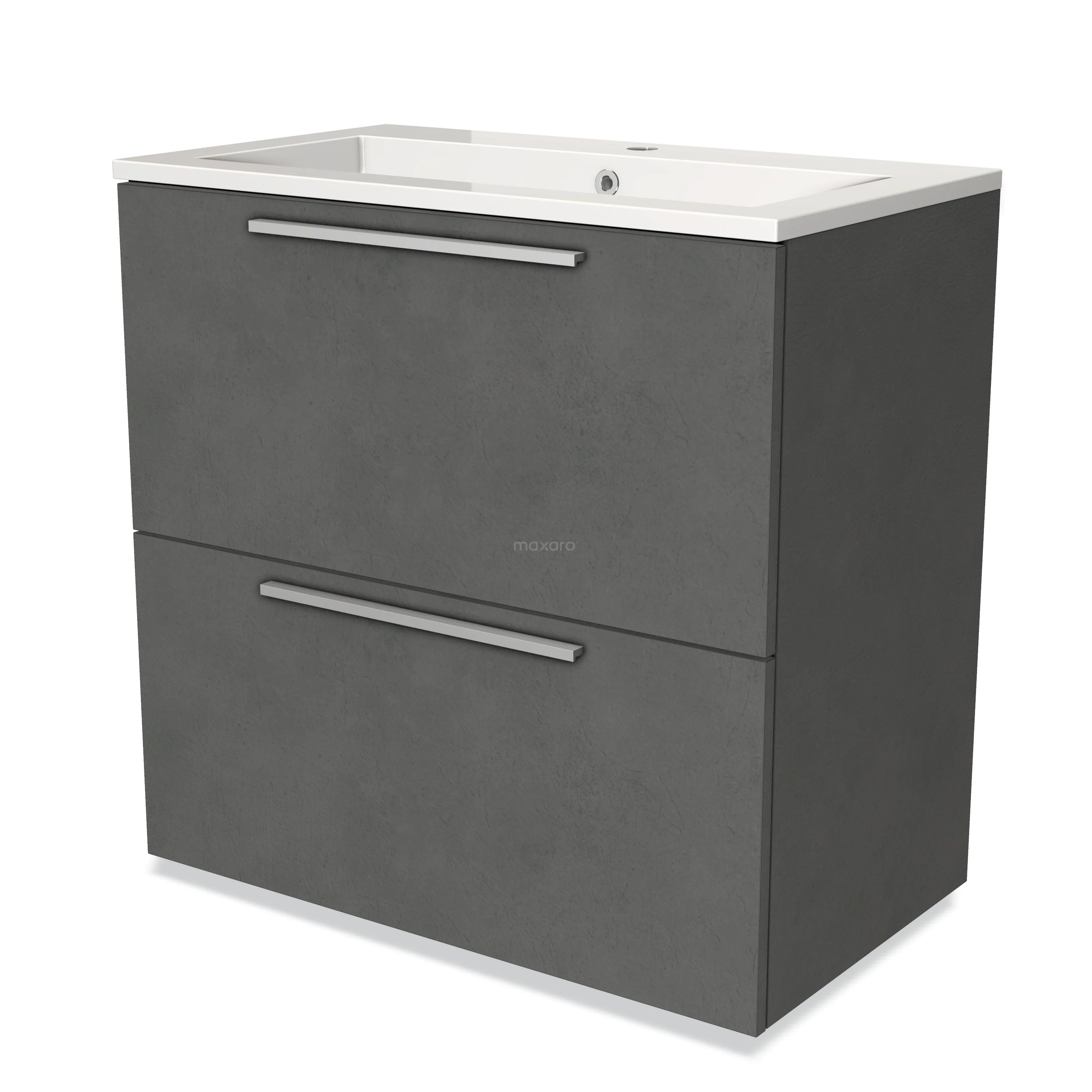 Modulo Vanity units with basin | 80 cm Dark grey concrete Flat front Mineral marble 2 stacked drawers under each other