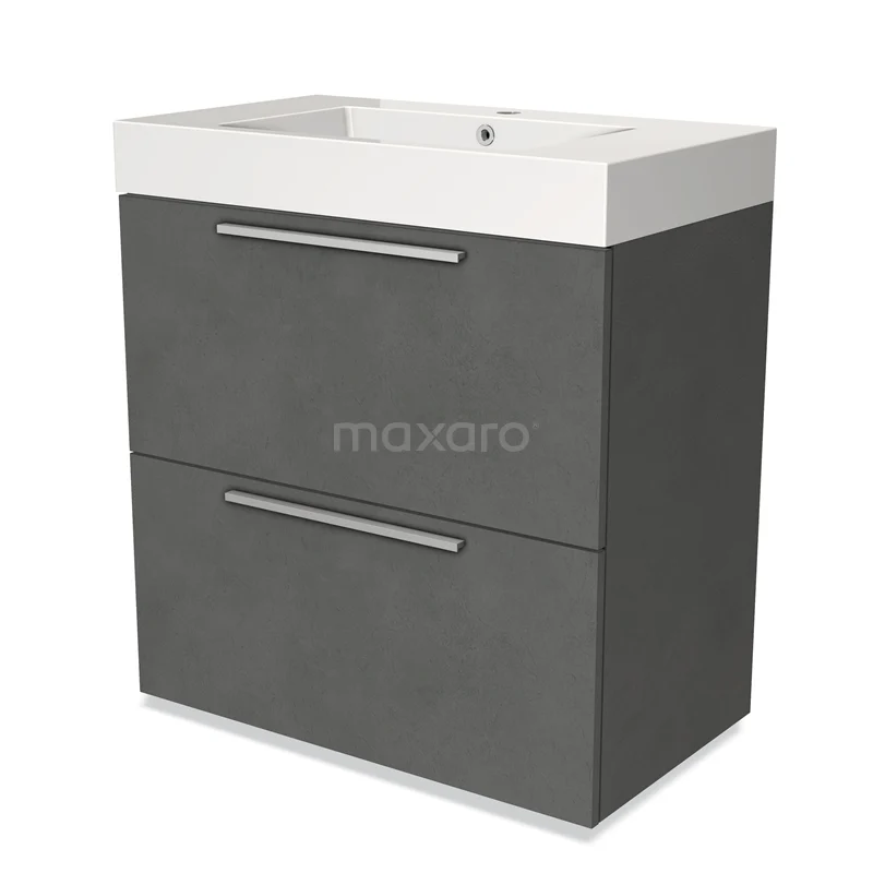 Modulo Vanity units with basin | 80 cm Dark grey concrete Flat front Mineral marble 2 stacked drawers under each other