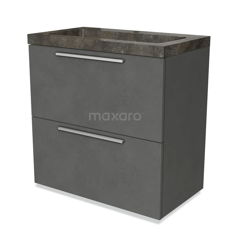 Modulo Vanity units with basin | 80 cm Dark grey concrete Flat front Natural stone 2 stacked drawers under each other