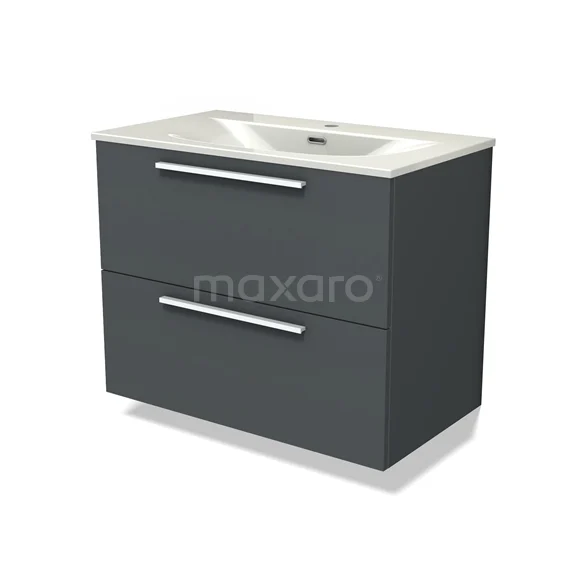 Modulo Vanity units with basin | 80 cm Dark grey Flat front Ceramic 2 Stacked drawers