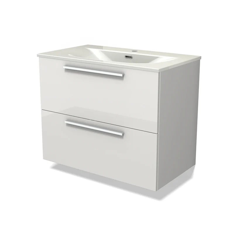 Modulo Vanity units with basin | 80 cm High-gloss white Flat front Ceramic 2 Stacked drawers