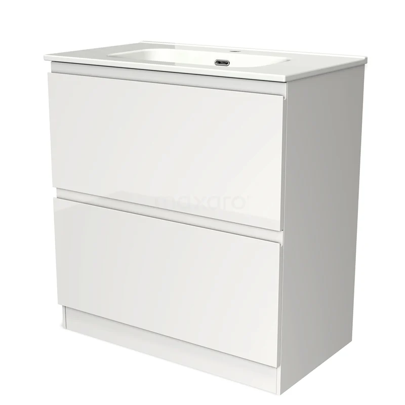 Modulo Vanity units with basin | 80 cm High-gloss white Handle-less front Ceramic 2 high drawers standing drawers under each other