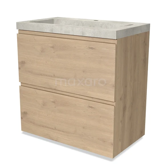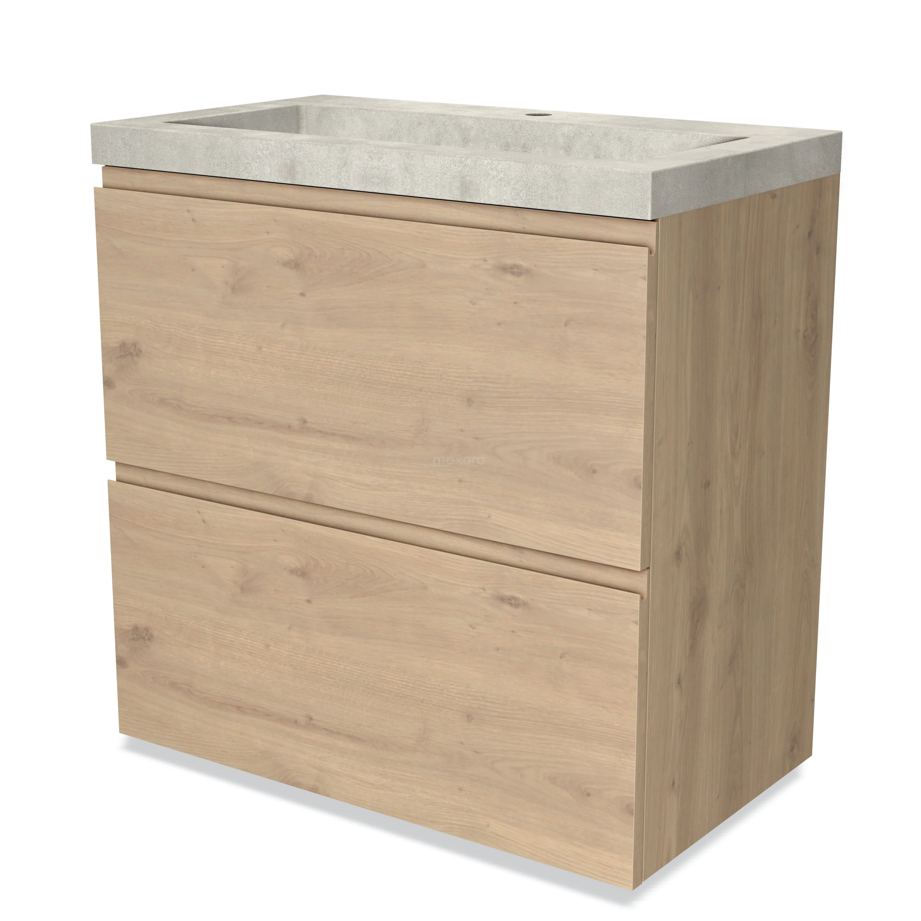 Modulo Vanity units with basin | 80 cm Light brown oak Handle-less front Concrete 2 stacked drawers under each other
