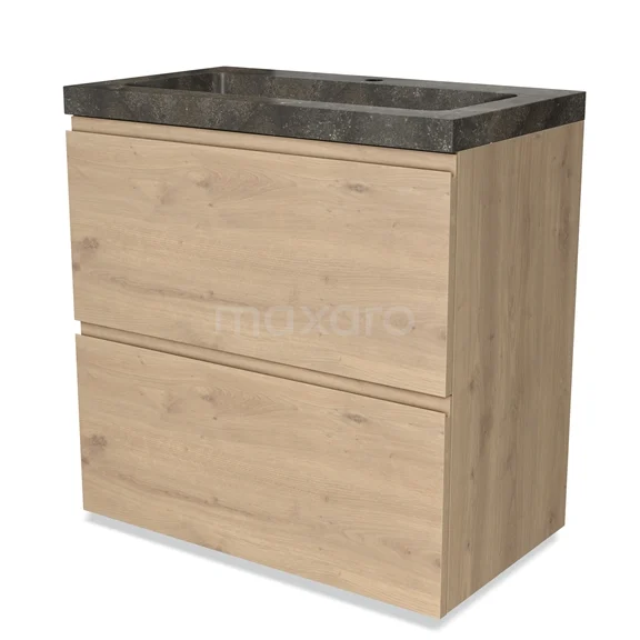 Modulo Vanity units with basin | 80 cm Light brown oak Handle-less front Natural stone 2 stacked drawers under each other