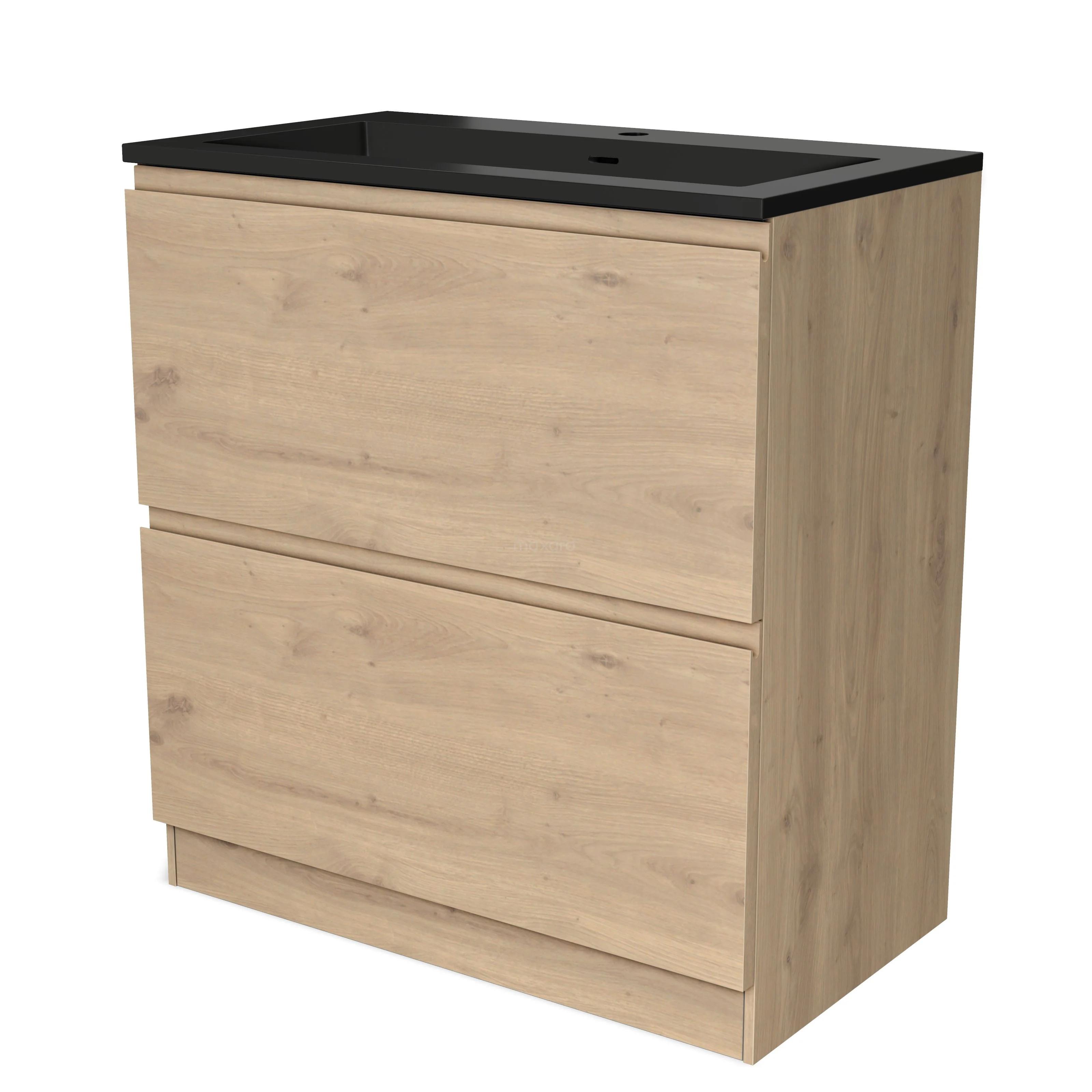 Modulo Vanity units with basin | 80 cm Light brown oak Handle-less front Quartz 2 high drawers standing drawers under each other