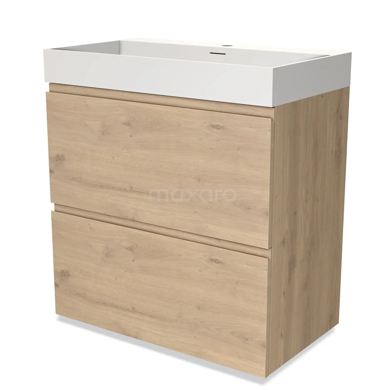 Modulo Vanity units with basin | 80 cm Light brown oak Handle-less front Solid surface 2 stacked drawers under each other