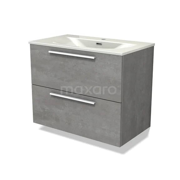 Modulo Vanity units with basin | 80 cm Light grey concrete Flat front Ceramic 2 Stacked drawers