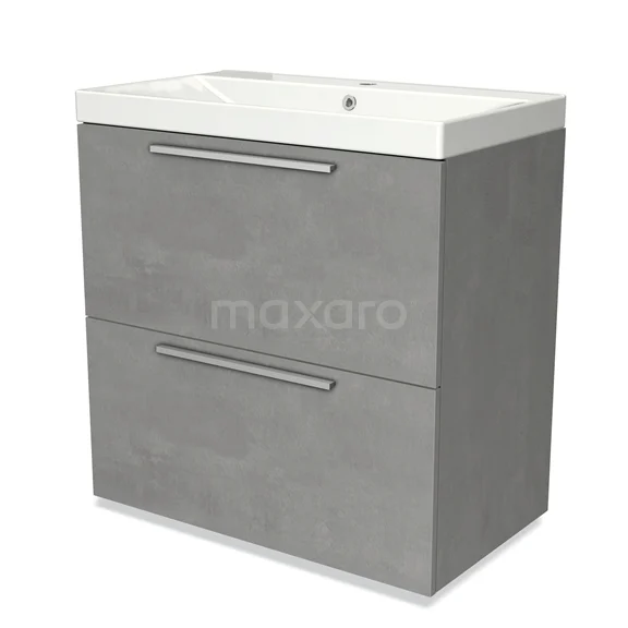 Modulo Vanity units with basin | 80 cm Light grey concrete Flat front Ceramic 2 stacked drawers under each other