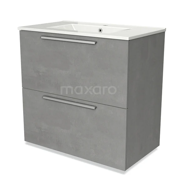 Modulo Vanity units with basin | 80 cm Light grey concrete Flat front Ceramic 2 stacked drawers under each other