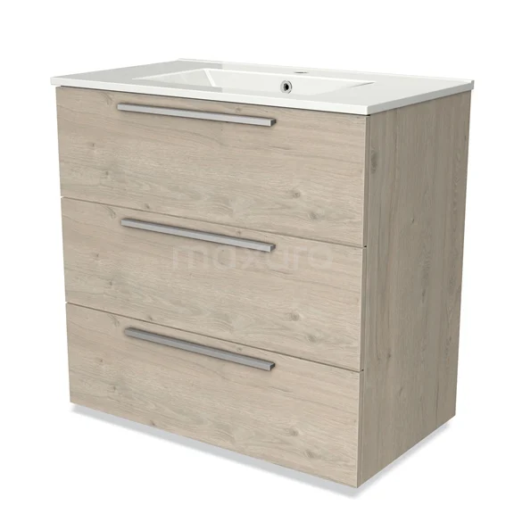 Modulo Vanity units with basin | 80 cm Light grey oak Flat front Ceramic 3 drawers