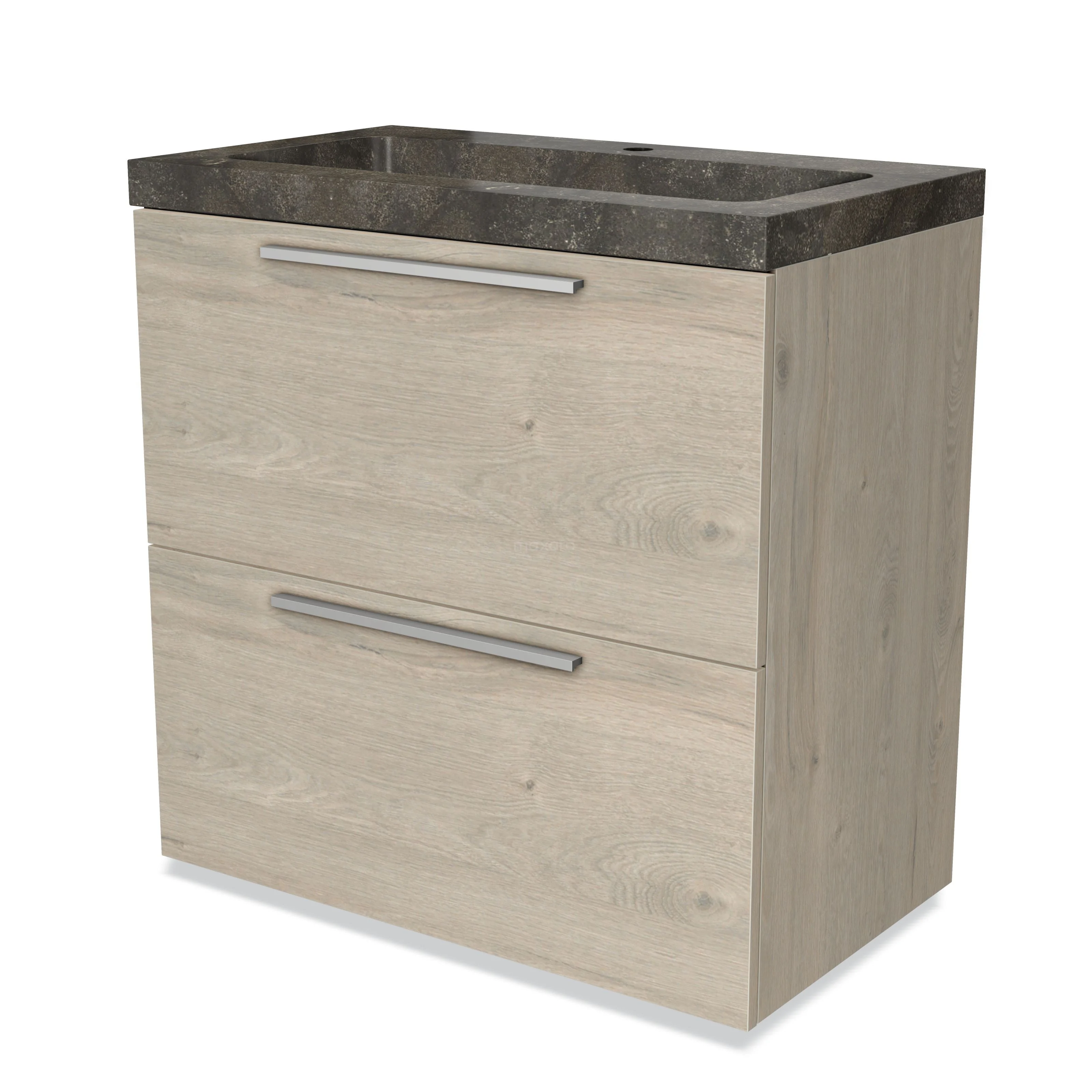 Modulo Vanity units with basin | 80 cm Light grey oak Flat front Natural stone 2 stacked drawers under each other