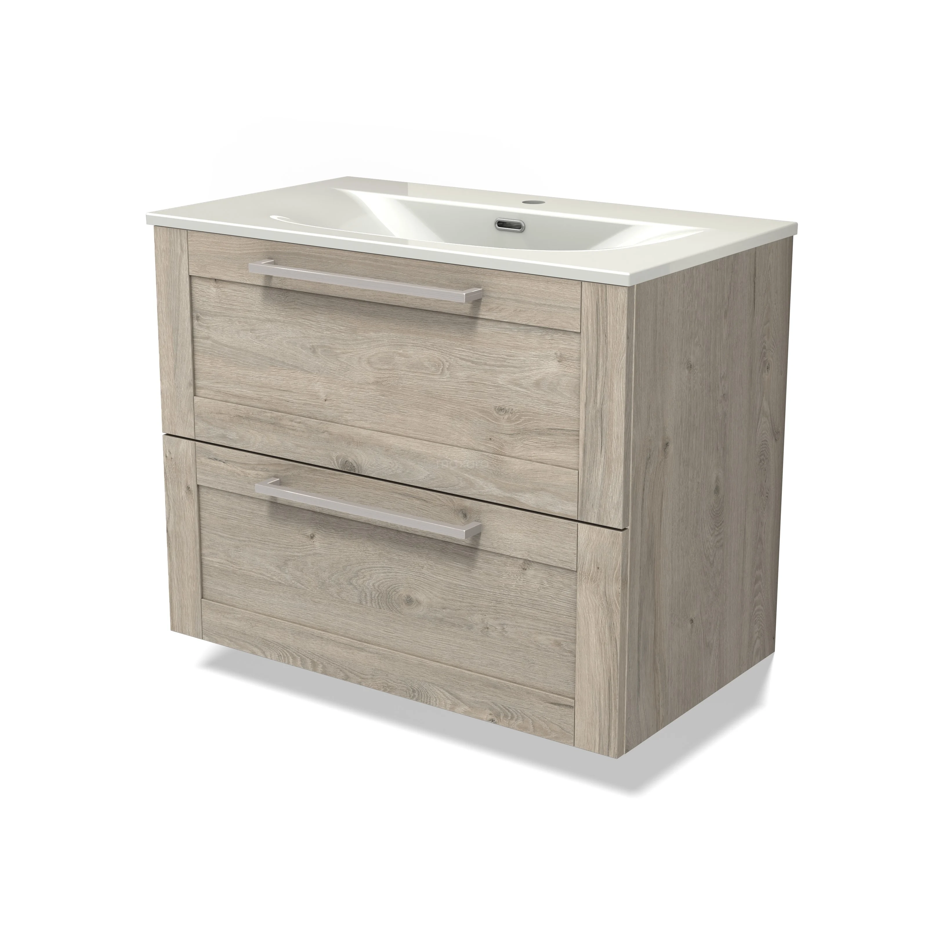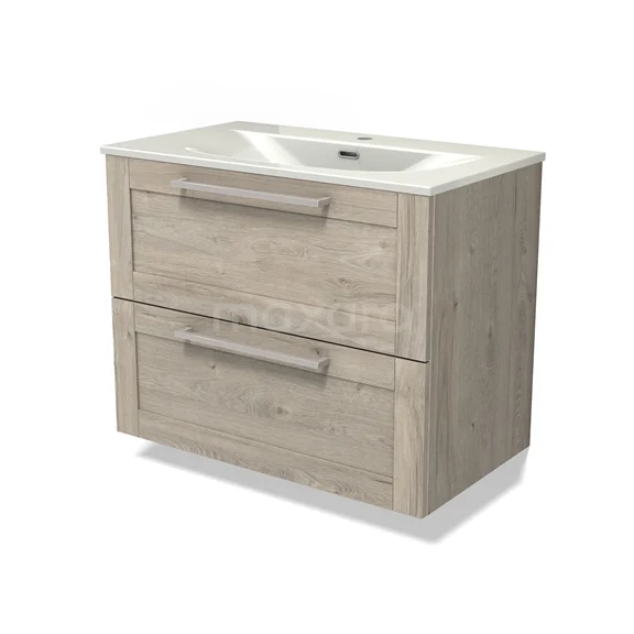 Modulo Vanity units with basin | 80 cm Light grey oak Frame front Ceramic 2 Stacked drawers