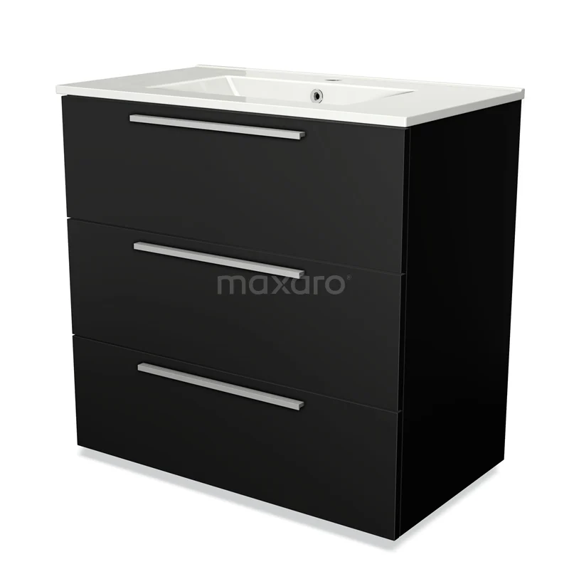 Modulo Vanity units with basin | 80 cm Matte black Flat front Ceramic 3 drawers