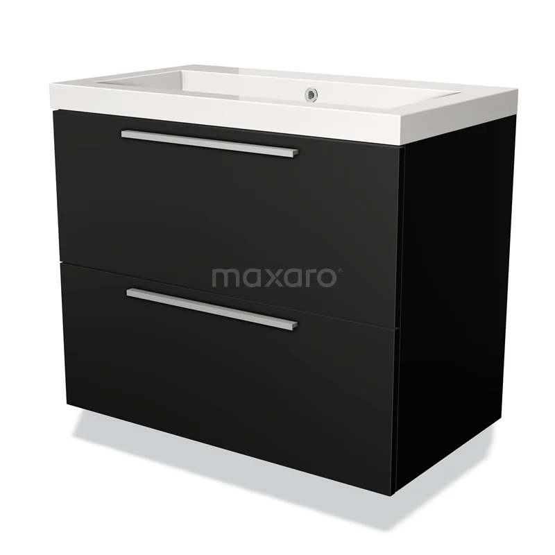 Modulo Vanity units with basin | 80 cm Matte black Flat front Mineral marble 2 Stacked drawers