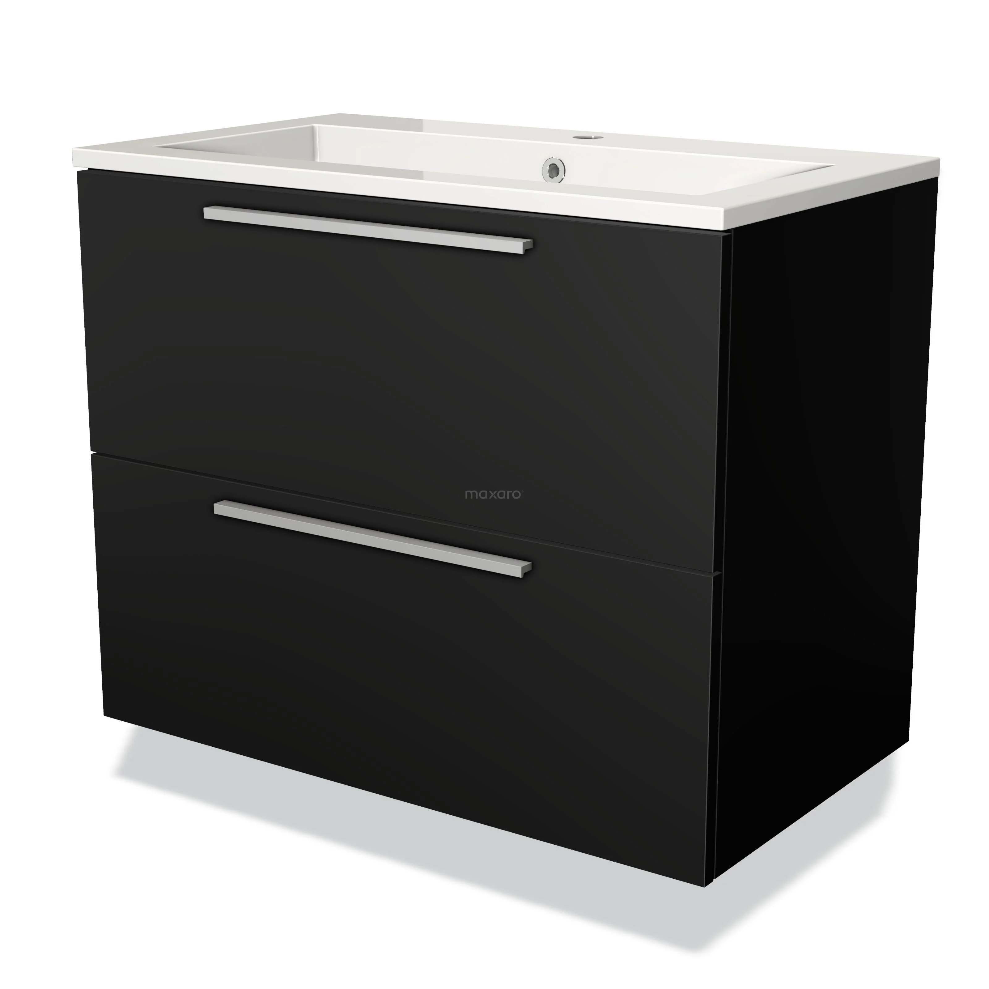 Modulo Vanity units with basin | 80 cm Matte black Flat front Mineral marble 2 Stacked drawers