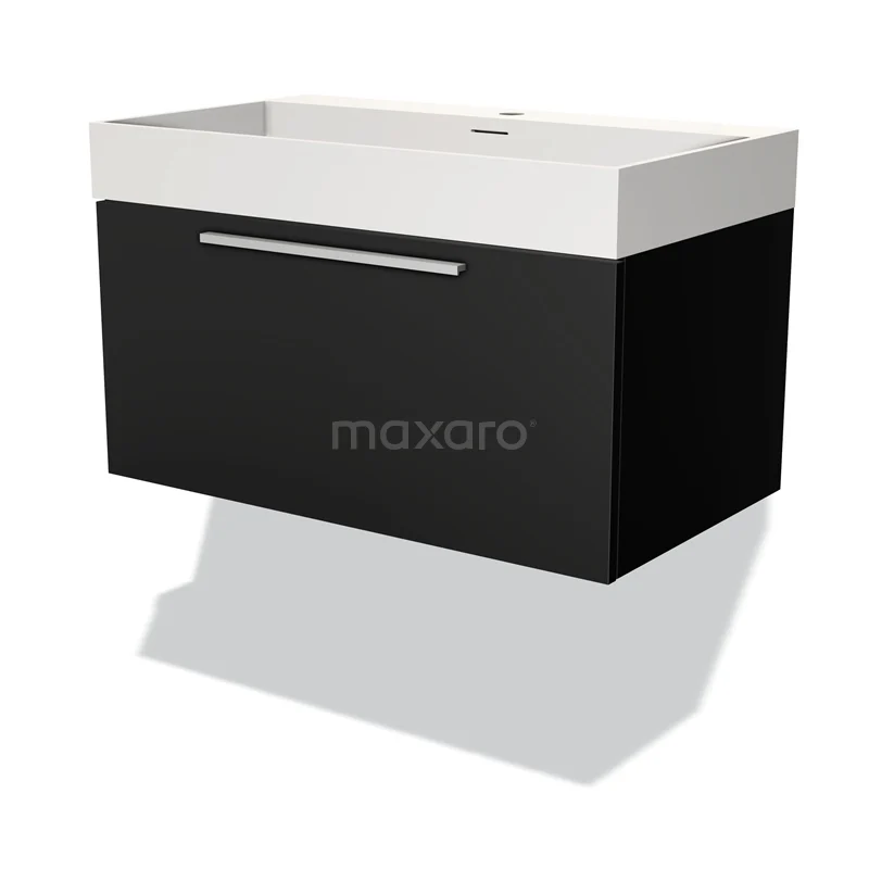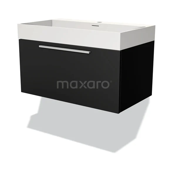 Modulo Vanity units with basin | 80 cm Matte black Flat front Solid surface 1 drawer