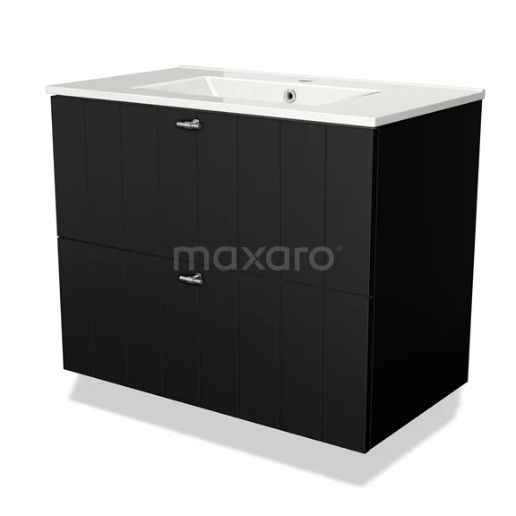 Modulo Vanity units with basin | 80 cm Matte black Slat front Ceramic 2 Stacked drawers