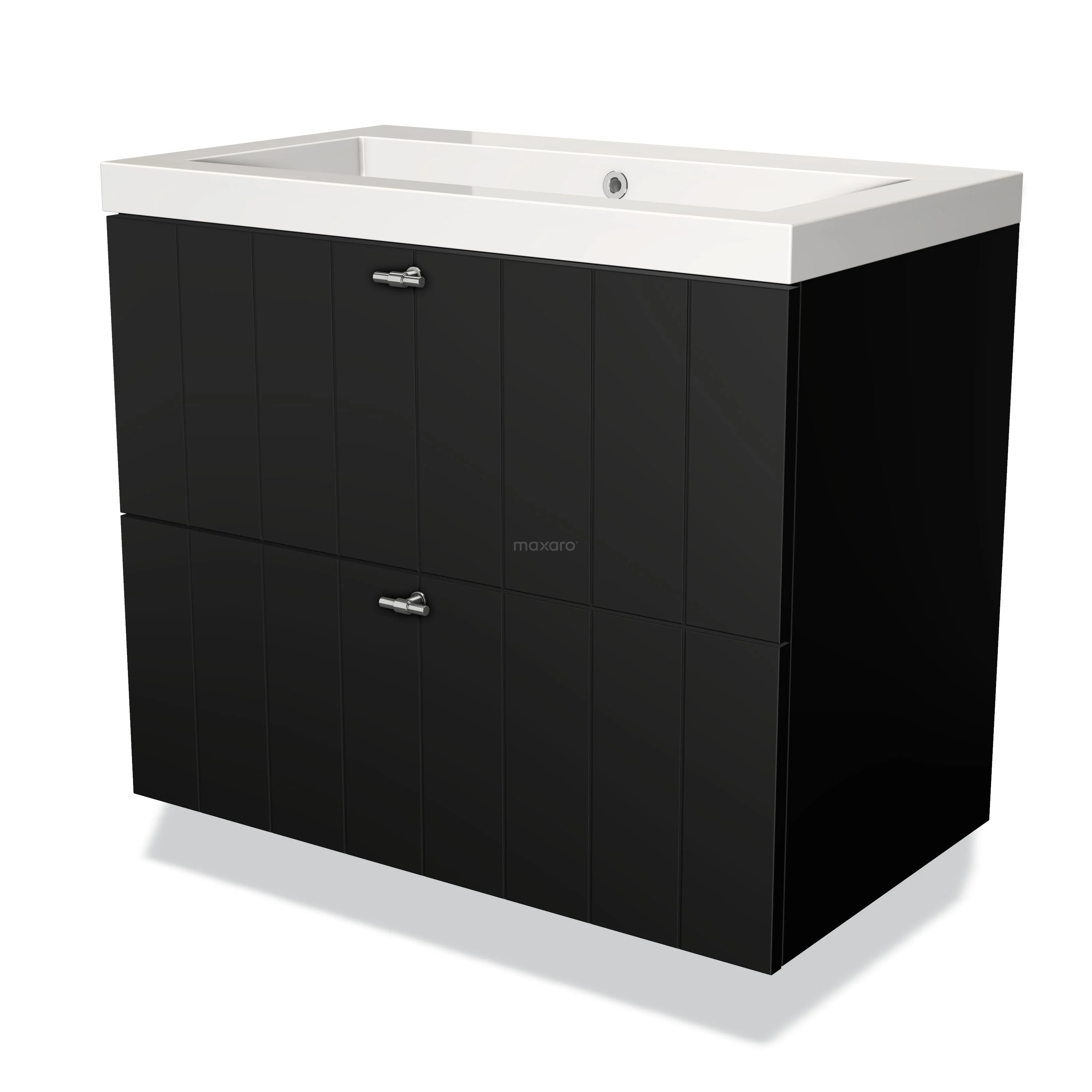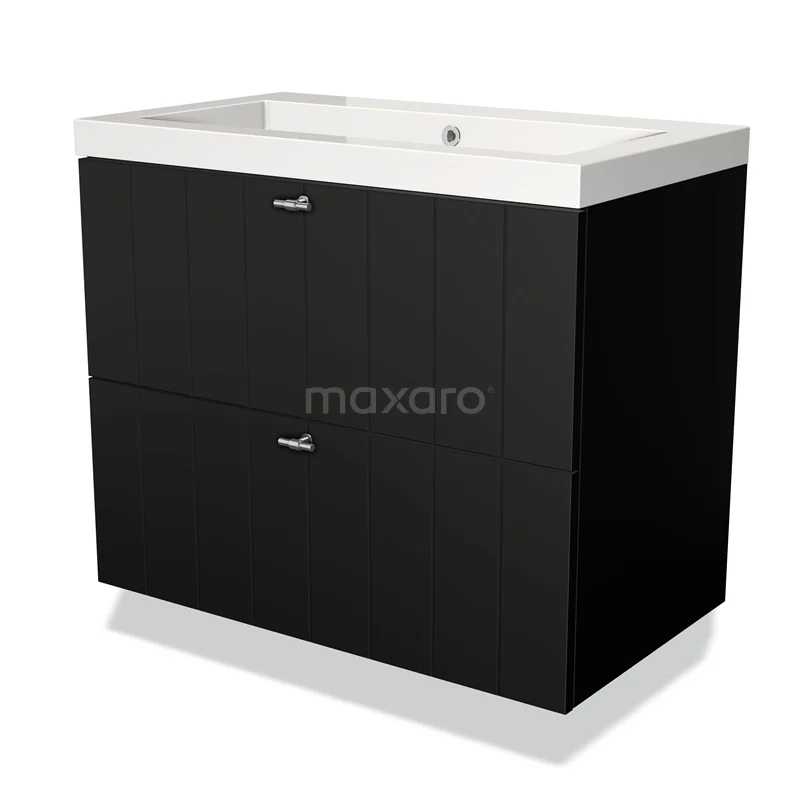 Modulo Vanity units with basin | 80 cm Matte black Slat front Mineral marble 2 Stacked drawers