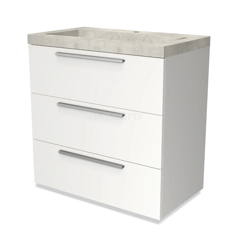 Modulo Vanity units with basin | 80 cm Matte white Flat front Concrete 3 drawers