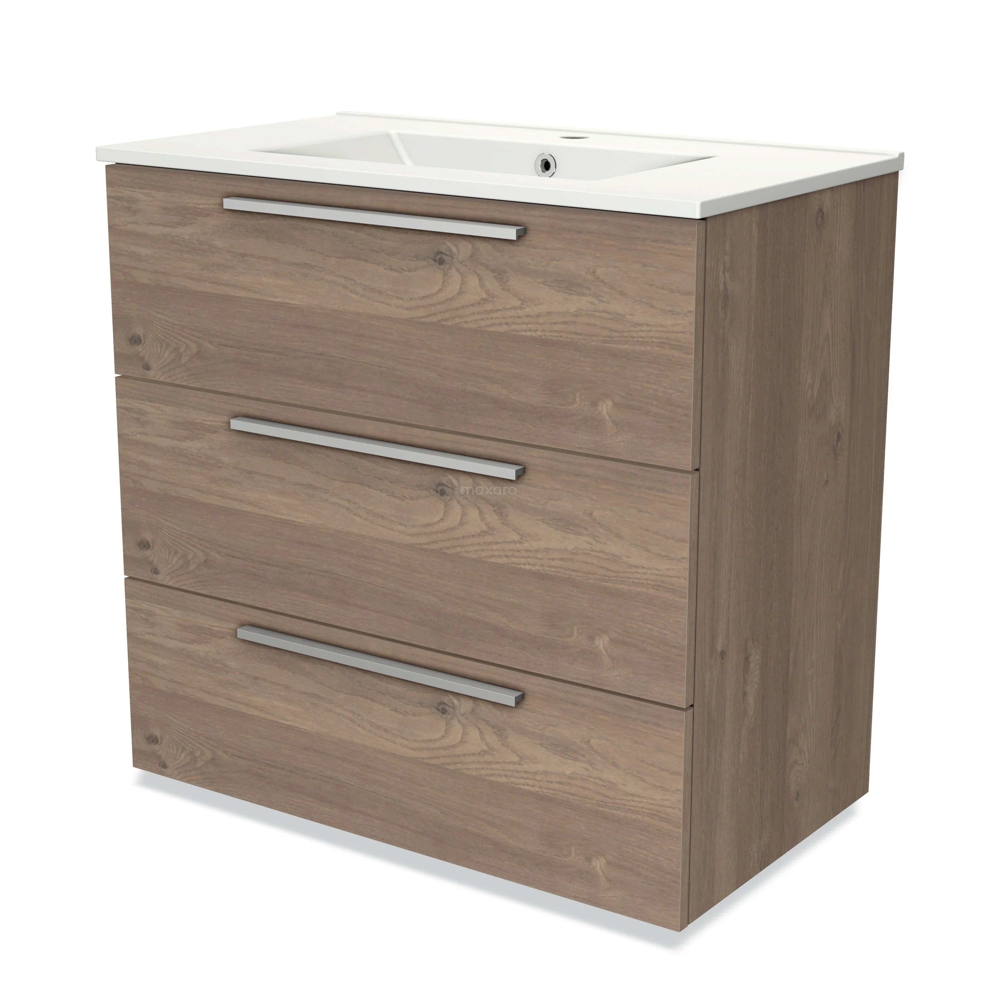 Modulo Vanity units with basin | 80 cm Mid brown oak Flat front Ceramic 3 drawers