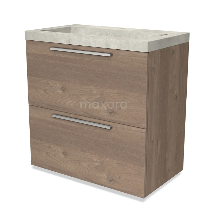 Modulo Vanity units with basin | 80 cm Mid brown oak Flat front Concrete 2 stacked drawers under each other