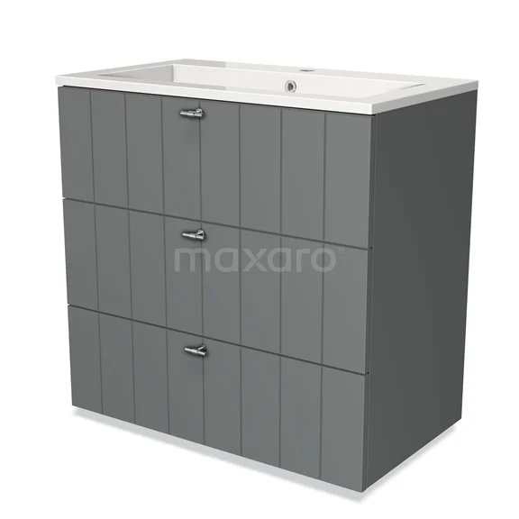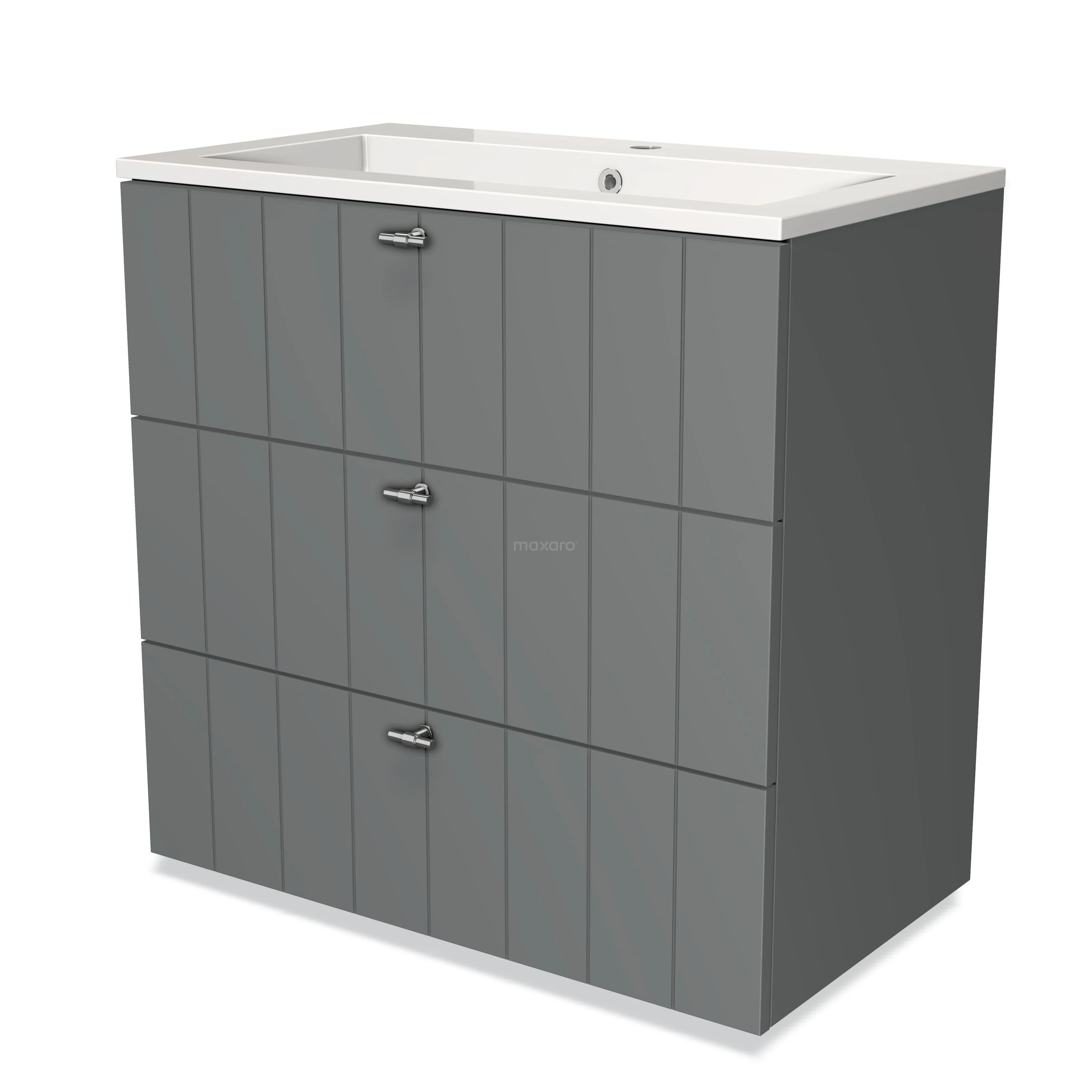 Modulo Vanity units with basin | 80 cm Mid grey Slat front Mineral marble 3 drawers