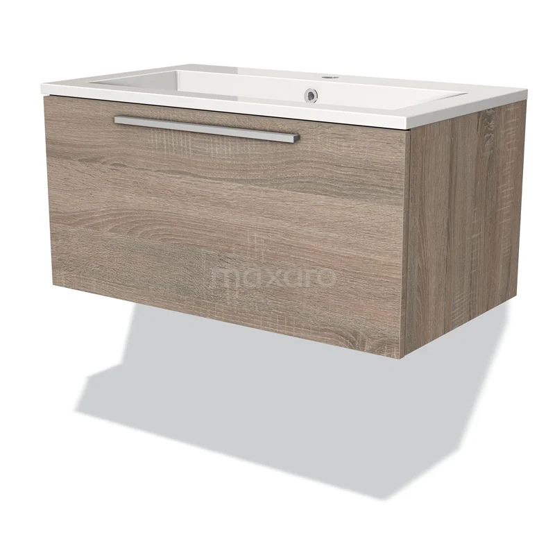 Modulo Vanity units with basin | 80 cm Oak Flat front Mineral marble 1 drawer