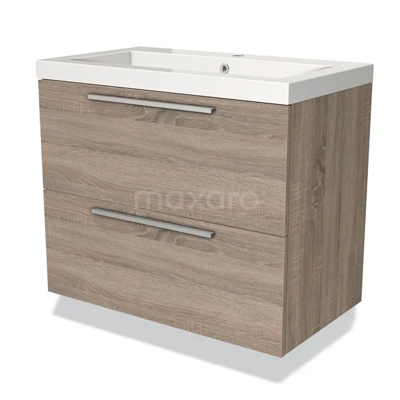 Stylish design The stylish design makes this bathroom unit the eye-catcher of your bathroom. The base cabinet features a flat front and has an oak finish. This beautiful oak look creates a warm atmosphere in your bathroom interior. In addition, the flat front provides a timeless touch. You need to joint the handles yourself. These are available in different colours and shapes.