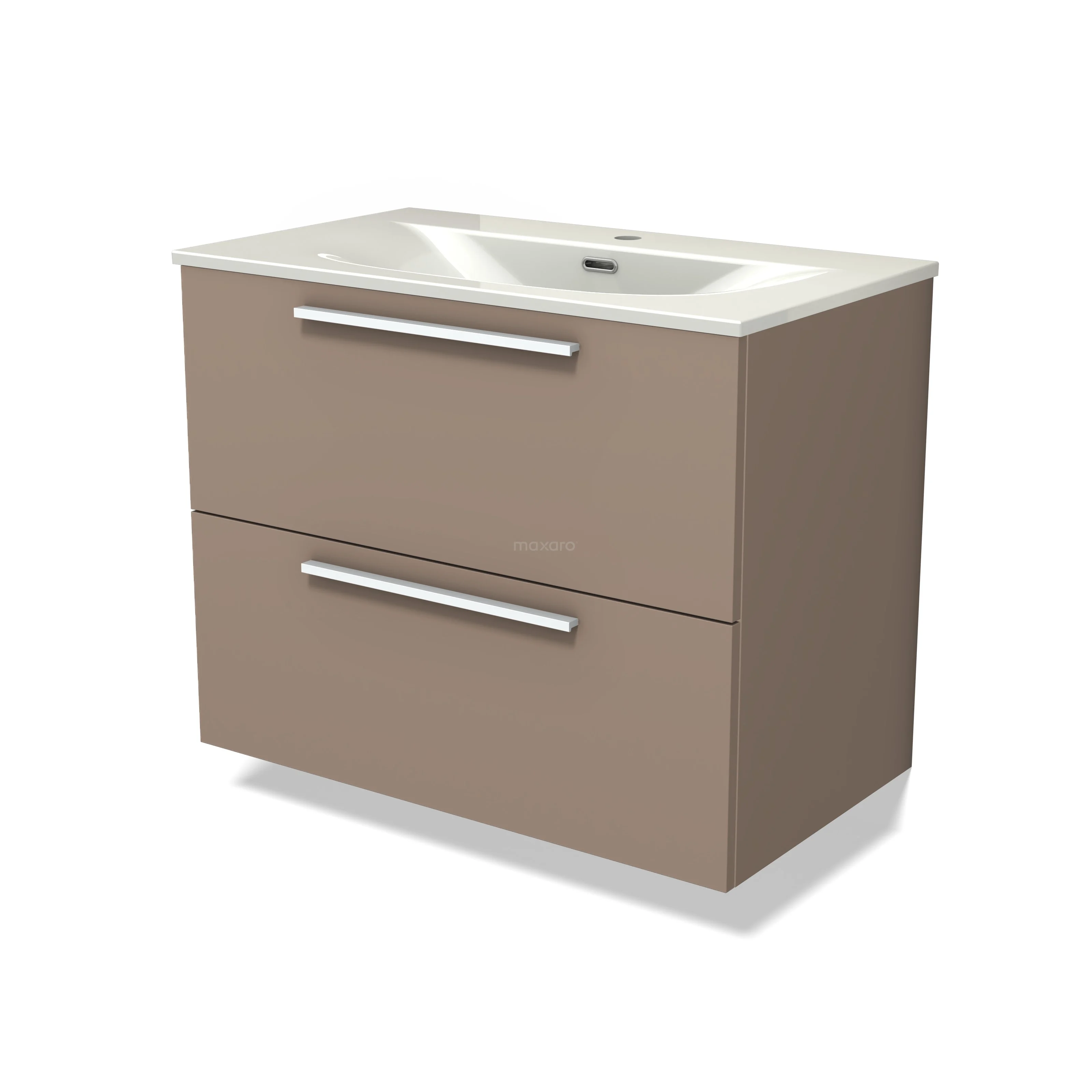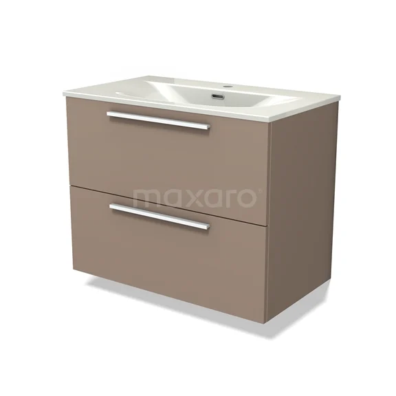 Modulo Vanity units with basin | 80 cm Taupe Flat front Ceramic 2 Stacked drawers