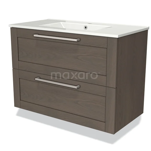 Modulo Vanity units with basin | 90 cm Dark brown oak Frame front Ceramic 2 Stacked drawers