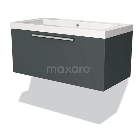 Modulo Vanity units with basin | 90 cm Dark grey Flat front Mineral marble 1 drawer