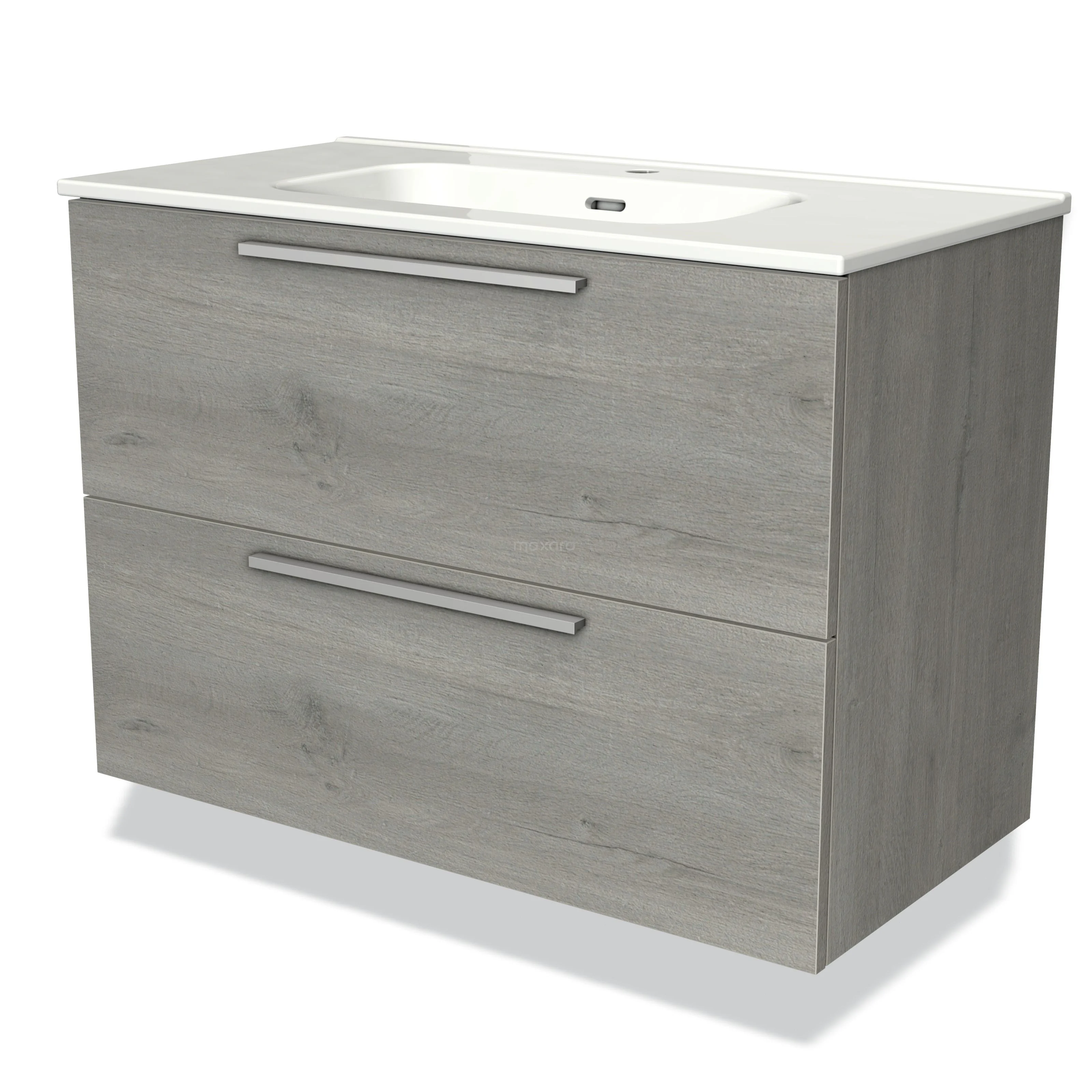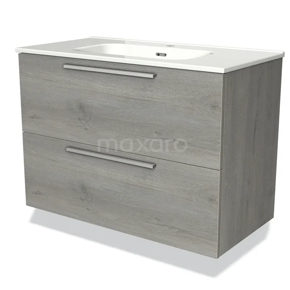 Modulo Vanity units with basin | 90 cm Grey oak Flat front Ceramic 2 Stacked drawers