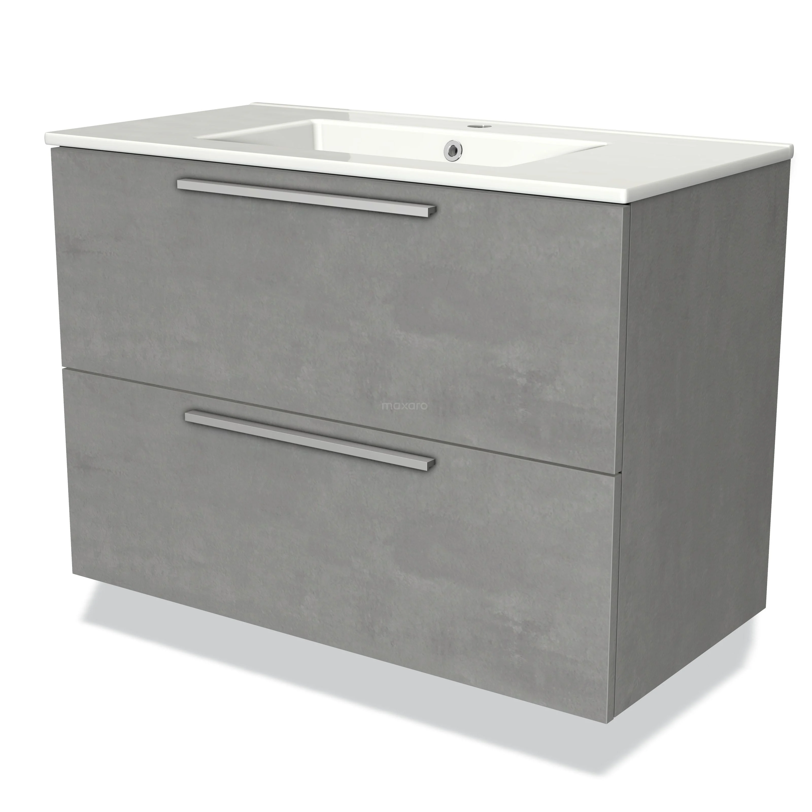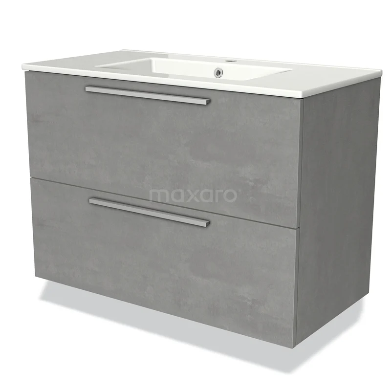 Modulo Vanity units with basin | 90 cm Light grey concrete Flat front Ceramic 2 Stacked drawers