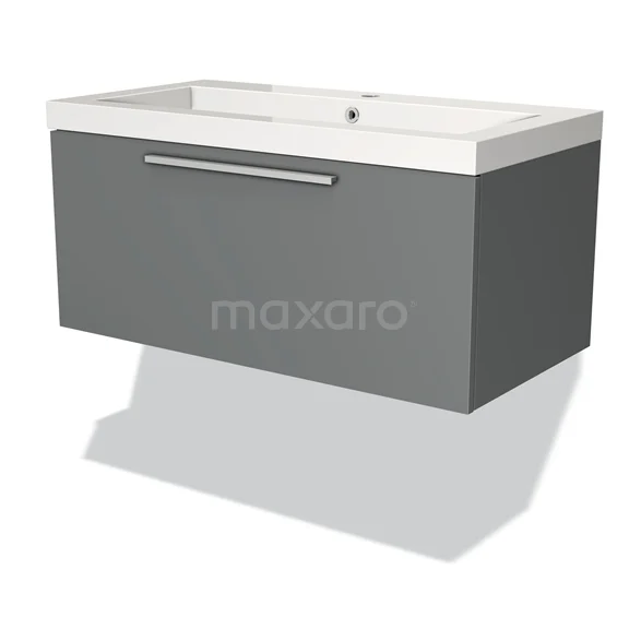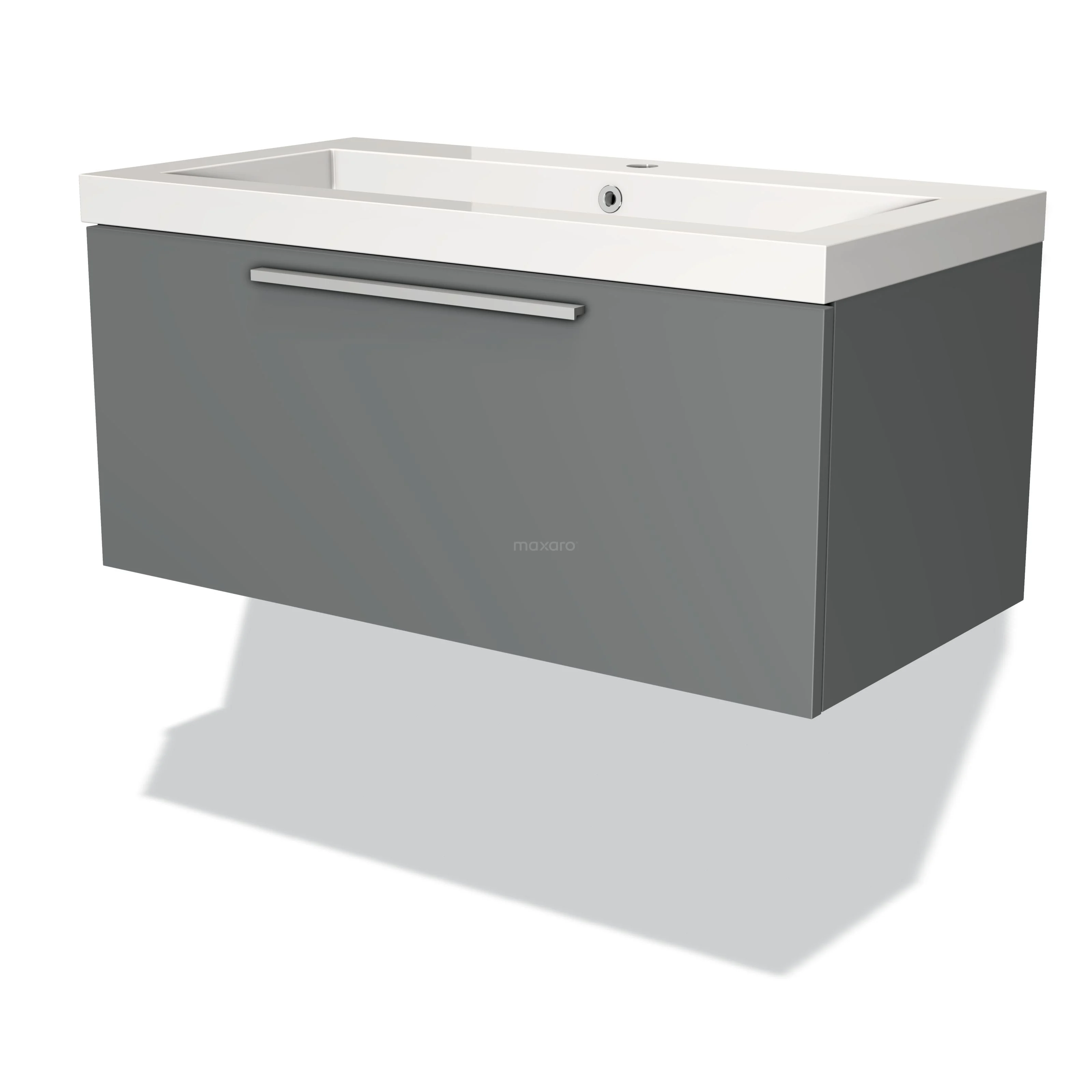 Modulo Vanity units with basin | 90 cm Mid grey Flat front Mineral marble 1 drawer