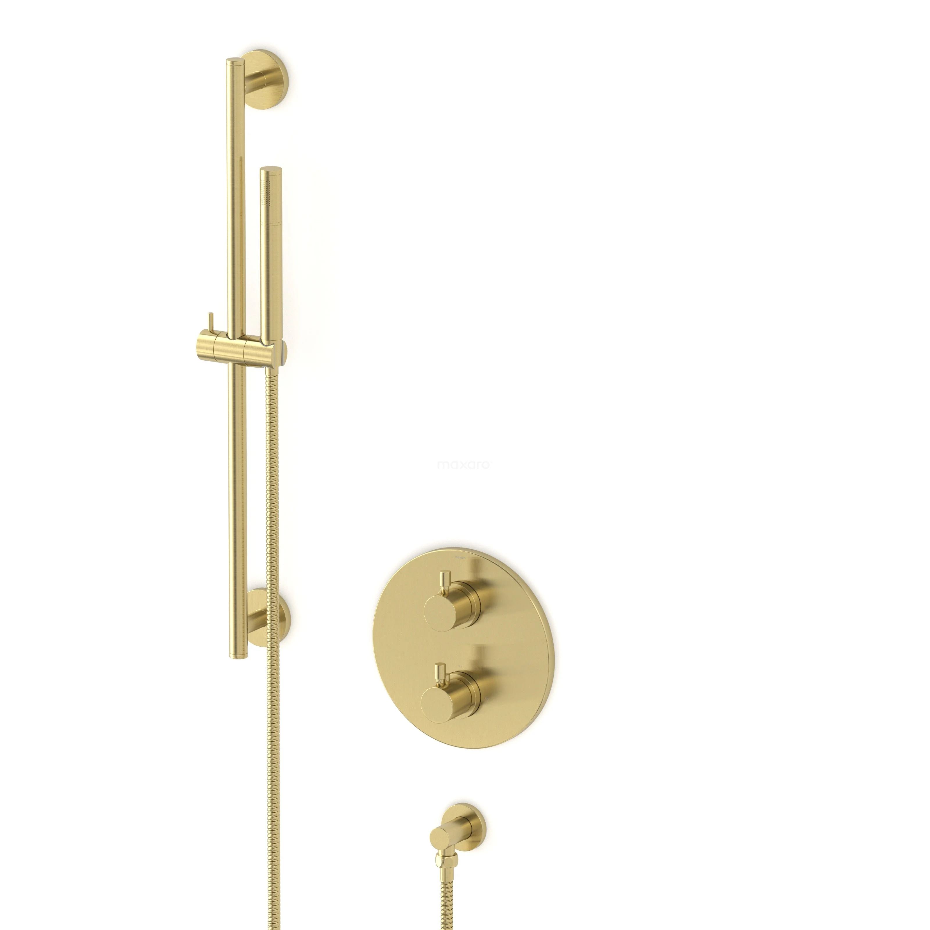 Het hoge afwerkingsniveau en gebruik van zuiver messing zorgen ervoor dat de doucheset een lange levensduur heeft. Alle onderdelen beschikken over een lichtgouden kleur. Verder is de thermostaatkraan zeer veilig dankzij de kinderbeveiliging op 38 graden. Het keramische binnenwerk van een gerenommeerd Europees merk zorgt voor een uitmuntende temperatuur- en watervolumeregeling. Door de uitstekende kwaliteit heeft u hier jarenlang plezier van.