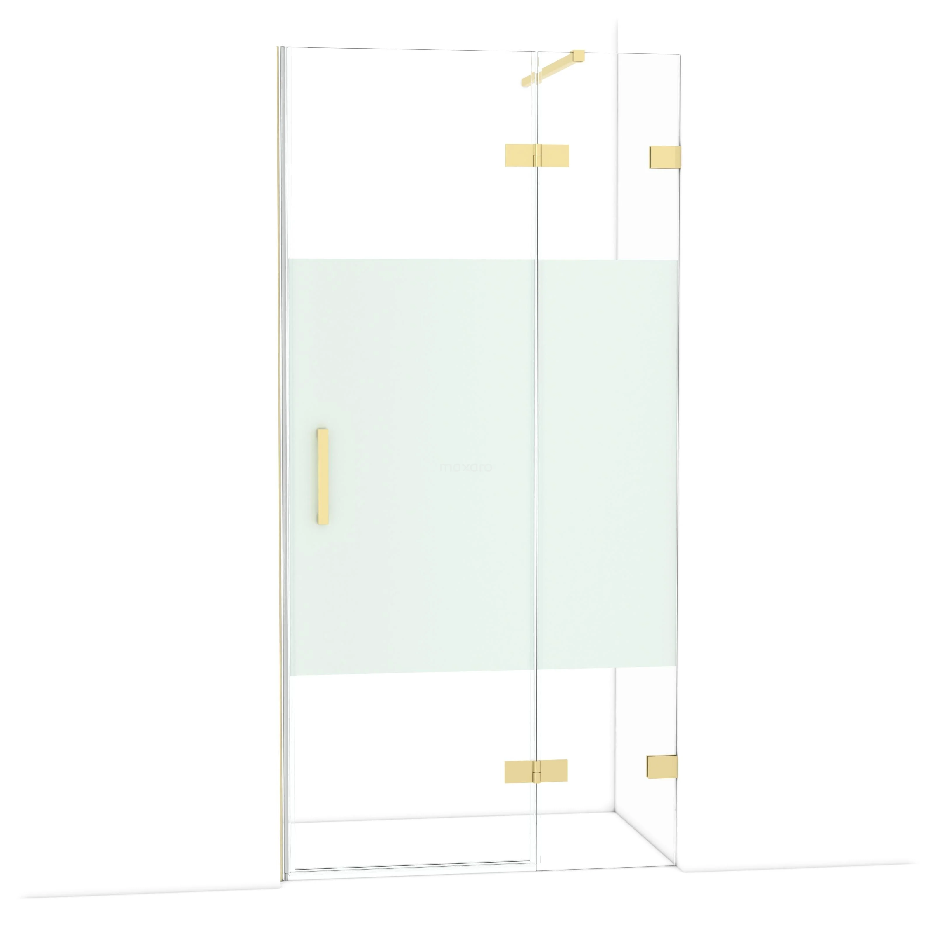 De Diamond-draaideur van 100 cm is ideaal om jouw douchenis af te sluiten. Dit exemplaar heeft een verfijnd en luxe design van glanzend lichtgoud en is voorzien van hoogwaardige scharnieren, tweepuntsbevestiging en een verticaal handvat. Het helder glas met matte strook zorgt voor meer privacy. Door de verstelbaarheid maak je de douchedeur gemakkelijk passend. De totale breedte is verstelbaar van 99,7 tot en met 100 cm.