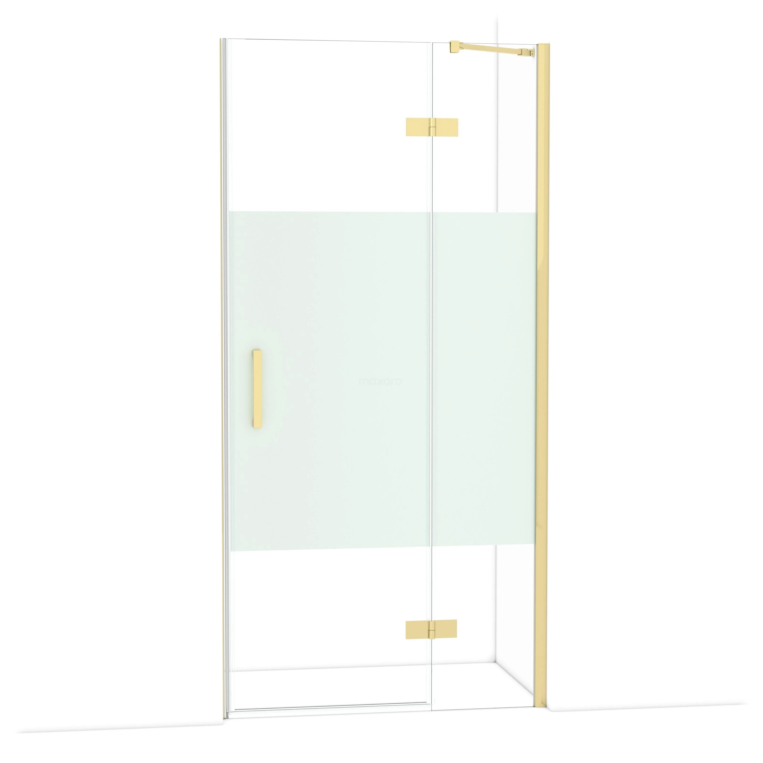 De Diamond-draaideur van 100 cm is ideaal om jouw douchenis af te sluiten. Dit exemplaar heeft een verfijnd en luxe design van glanzend lichtgoud en is voorzien van hoogwaardige scharnieren, muurprofiel en een verticaal handvat. Het helder glas met matte strook zorgt voor meer privacy. Door de verstelbaarheid maak je de douchedeur gemakkelijk passend. De totale breedte is verstelbaar van 99,8 tot en met 101,3 cm.