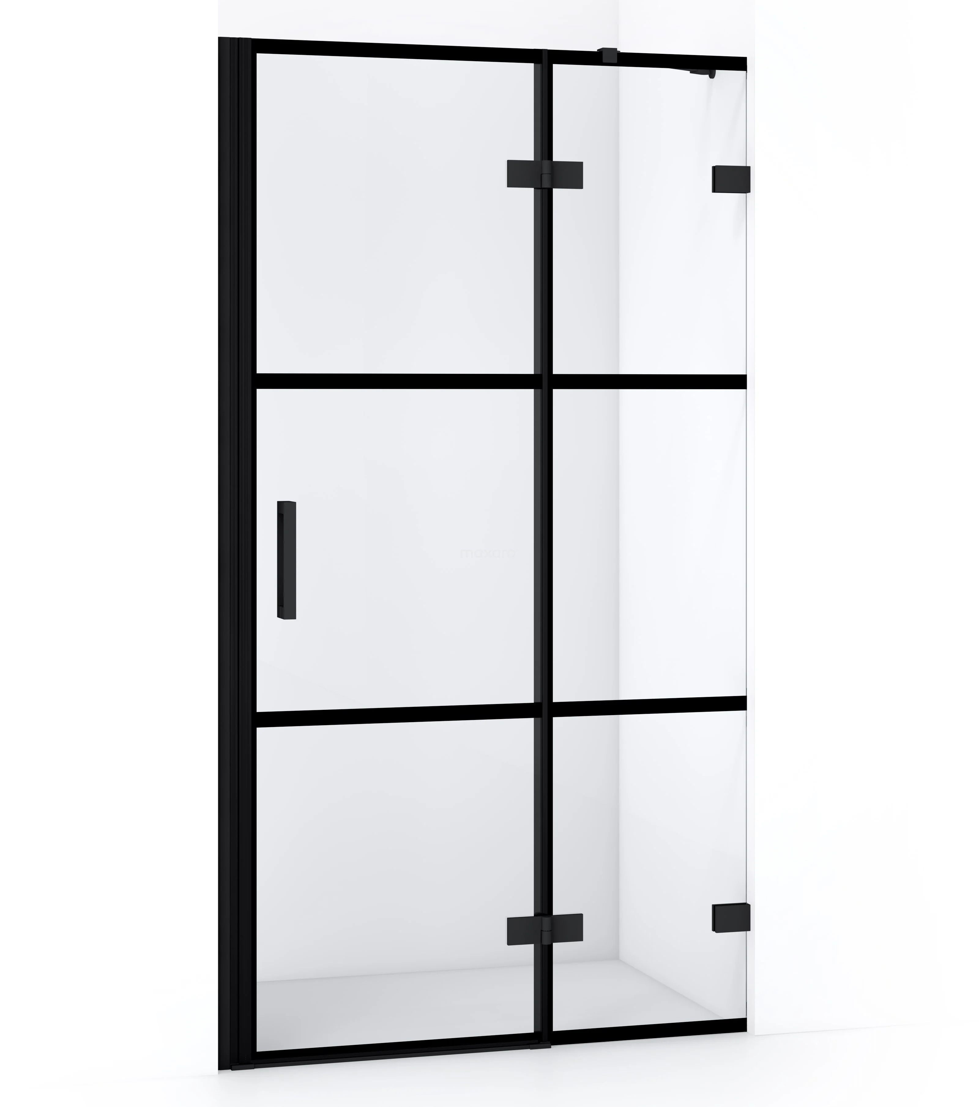 The 100 cm Diamond pivot door is ideal for closing off your shower area. This one has a tough, matte black finish and features high-quality hinges, two-point fixing to the wall and a vertical handle. Clear glass with black stripes adds an industrial touch. The adjustability makes it easy to fit the shower door. The overall width is adjustable from 101.7 to 102.7 cm.
