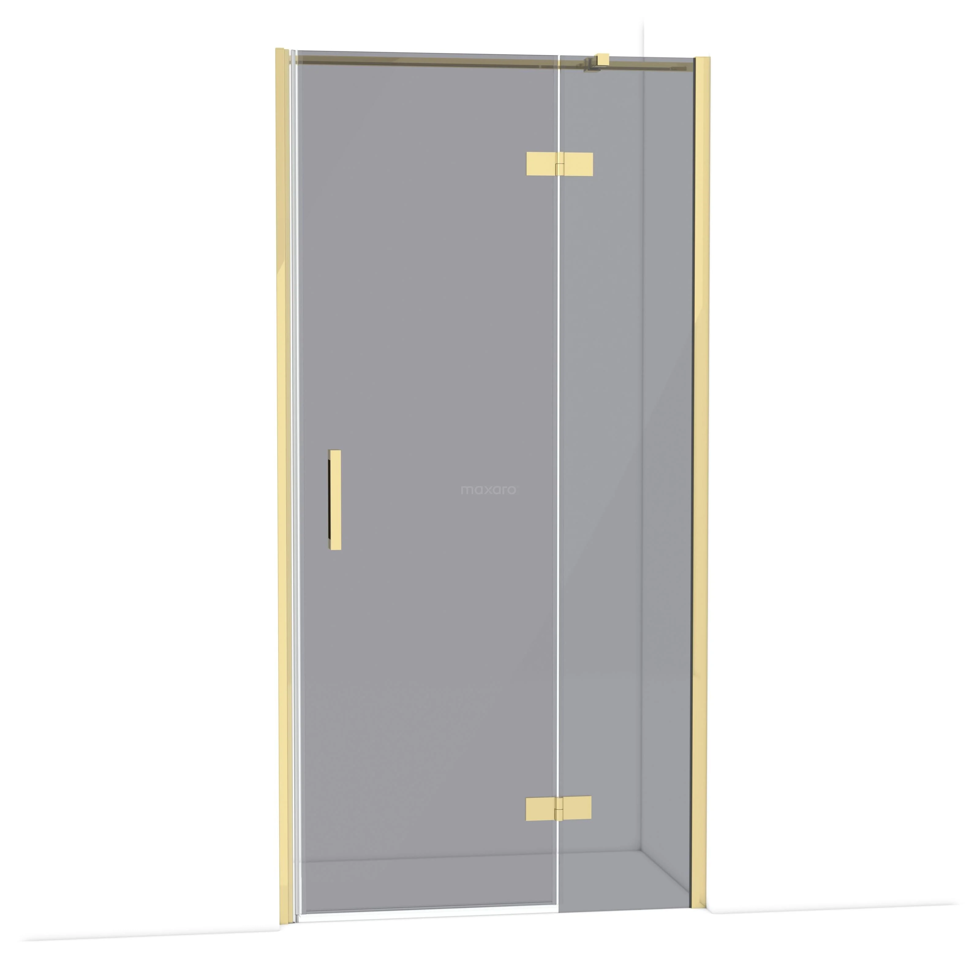 The Diamond hinged door of 100 cm is ideal for closing off your shower area. This model features a refined and luxurious design in glossy light gold and is equipped with high-quality hinges, wall profile, and a vertical handle. The smoked glass adds a chic appearance. Thanks to its adjustability, you can easily make the shower door fit. The total width is adjustable from 101.8 to 104 cm.