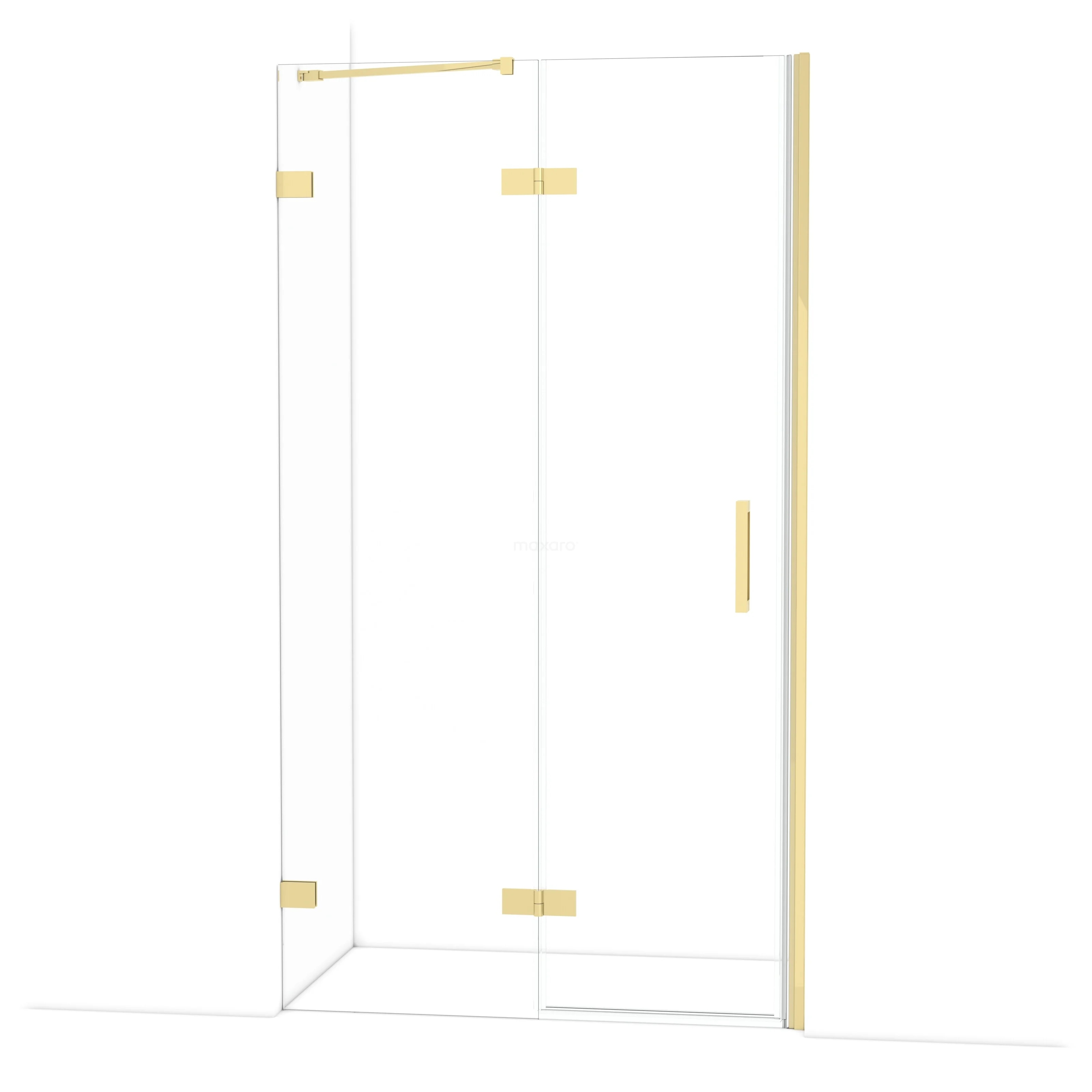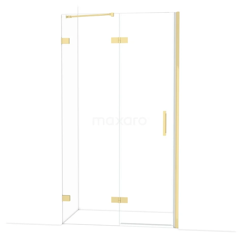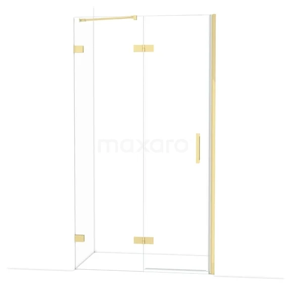 The Diamond hinged door of 110 cm is ideal for closing off your shower space. This model features a refined and luxurious design in shiny light gold and is equipped with high-quality hinges, two-point fixation, and a vertical handle. The clear glass provides a sense of spaciousness. Thanks to its adjustability, you can easily make the shower door fit. The total width is adjustable from 111.7 to 112.7 cm.