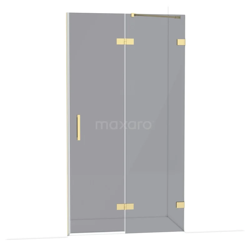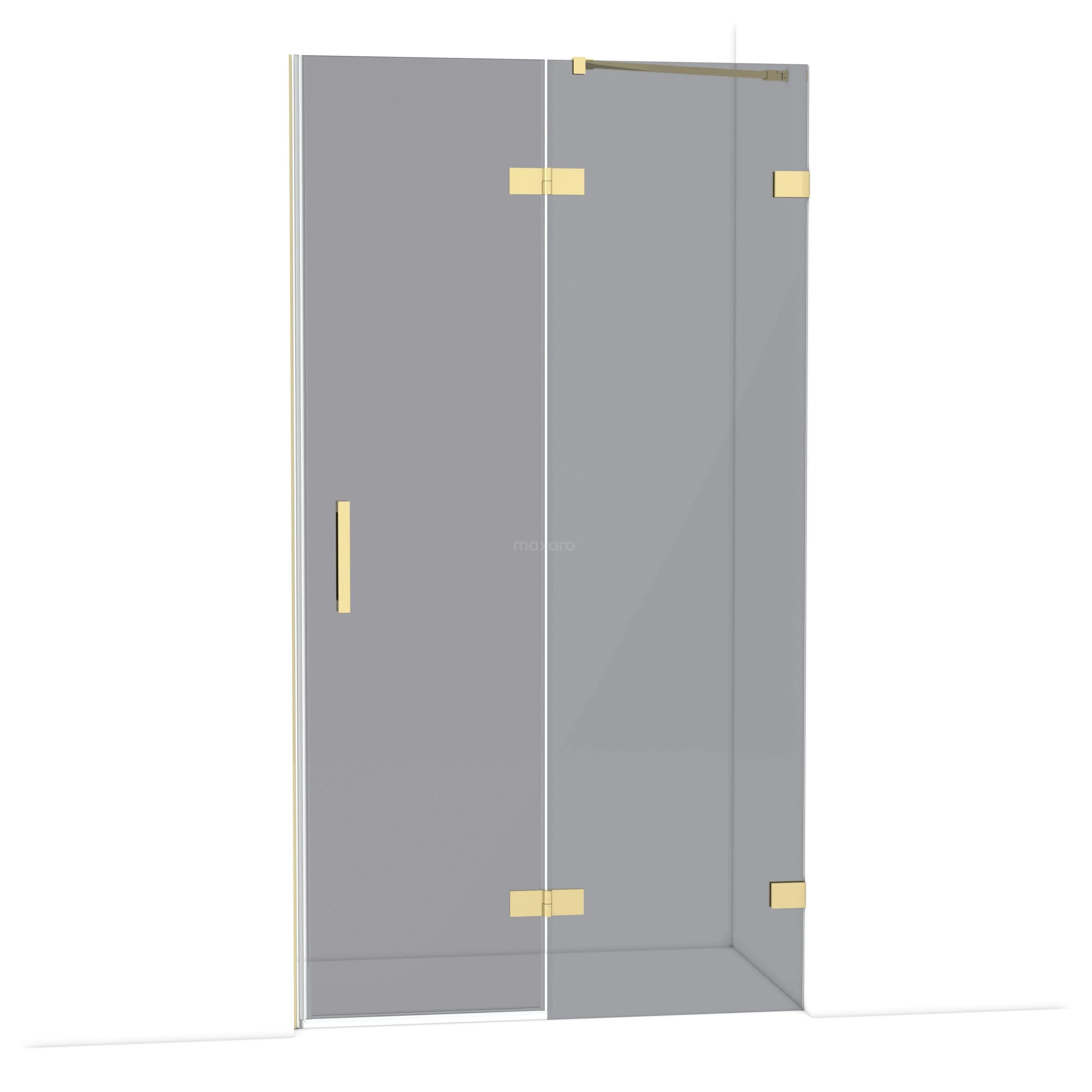 The Diamond hinged door of 110 cm is ideal for closing off your shower area. This model features a refined and luxurious design in shiny light gold and is equipped with high-quality hinges, two-point fixation, and a vertical handle. The smoked glass gives it a chic appearance. Thanks to its adjustability, you can easily make the shower door fit. The total width is adjustable from 109.7 to 110 cm.