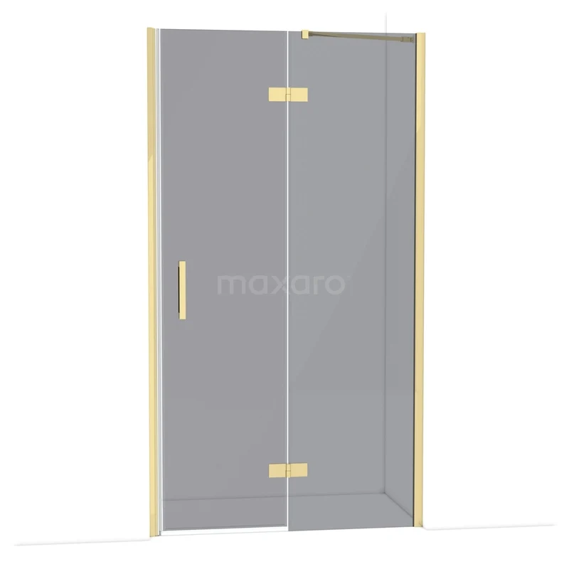 The Diamond hinged door of 110 cm is ideal for closing off your shower space. This model features a refined and luxurious design in shiny light gold and is equipped with high-quality hinges, wall profile, and a vertical handle. The smoked glass provides a chic appearance. Thanks to its adjustability, you can easily make the shower door fit. The total width is adjustable from 111.8 to 114 cm.