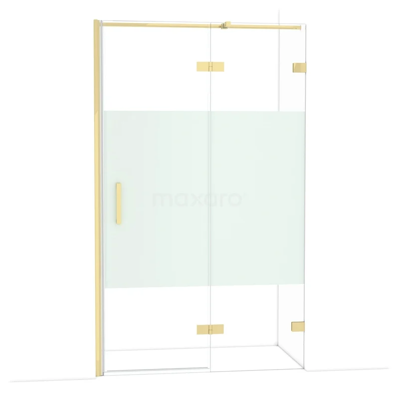 Diamond Shower door | 120 cm Shiny light gold Clear with matt strip Pivot door