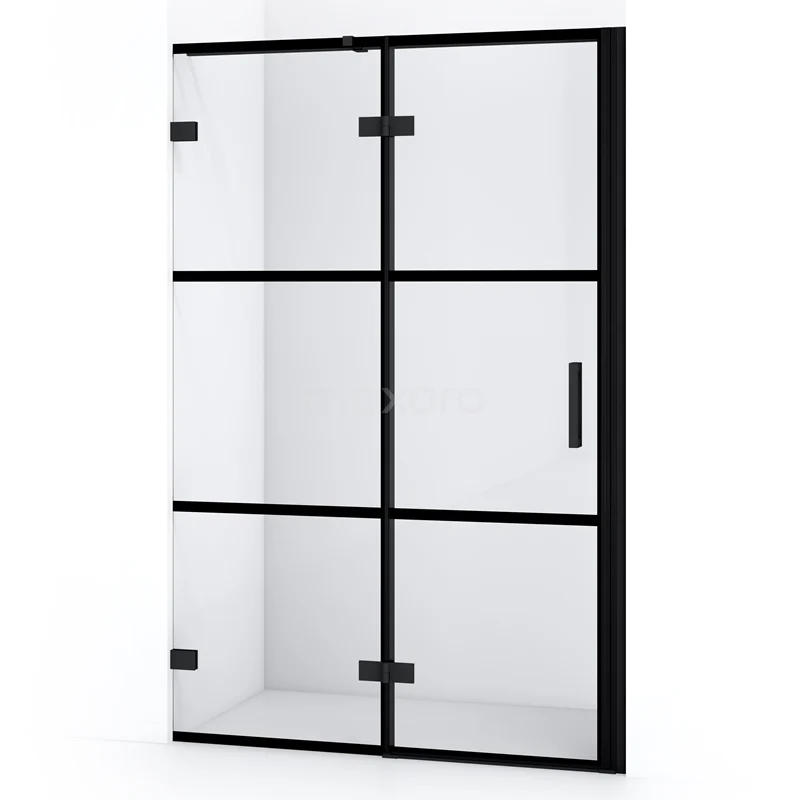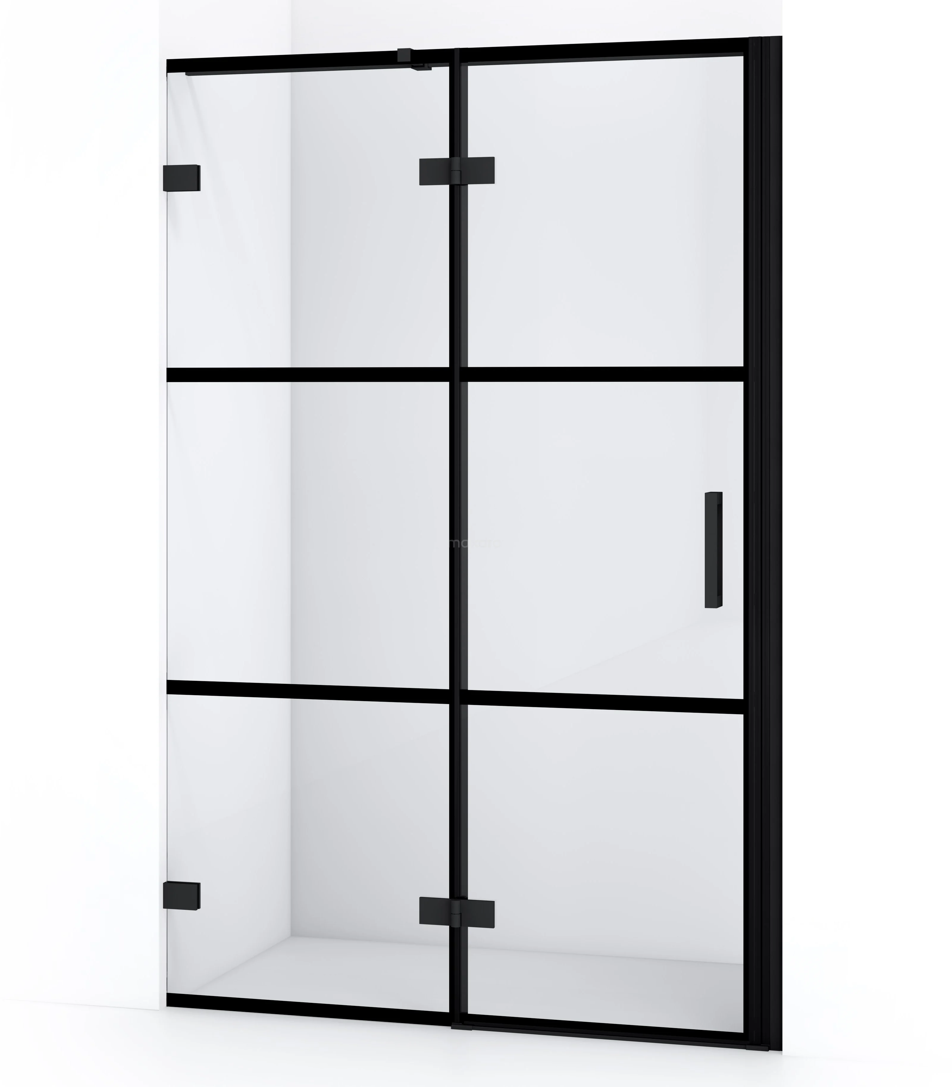 The 120 cm Diamond pivot door is ideal for closing off your shower area. This one has a tough, matte black finish and features high-quality hinges, two-point fixing to the wall and a vertical handle. Clear glass with black stripes adds an industrial touch. The adjustability makes it easy to fit the shower door. The overall width is adjustable from 121.7 to 122.7 cm.